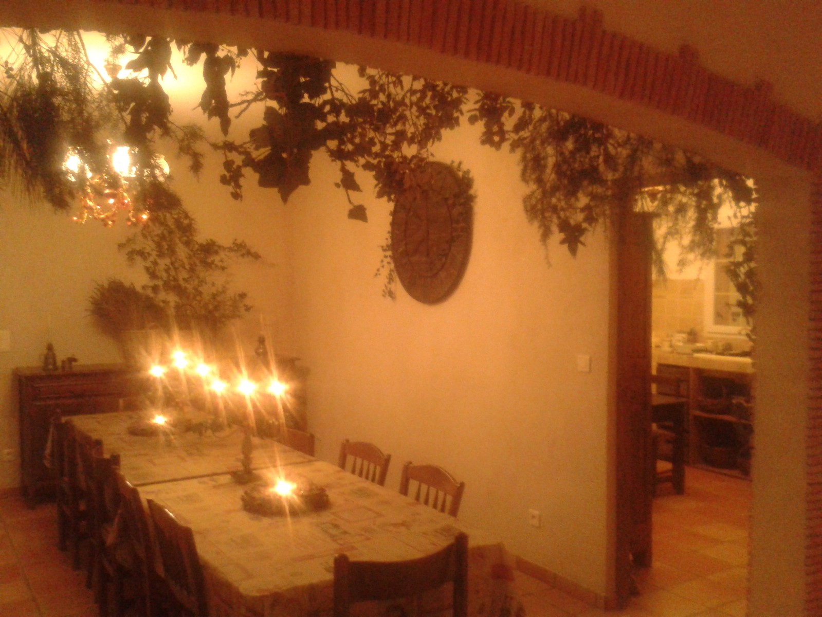 Vin doux maison suivi d'un dîner de saison aux chandelles.